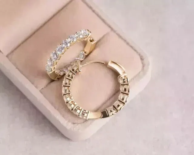 2Ct Round Cut Lab-Created Diamond Huggie Hoop Earrings 14K Yellow Gold Plated