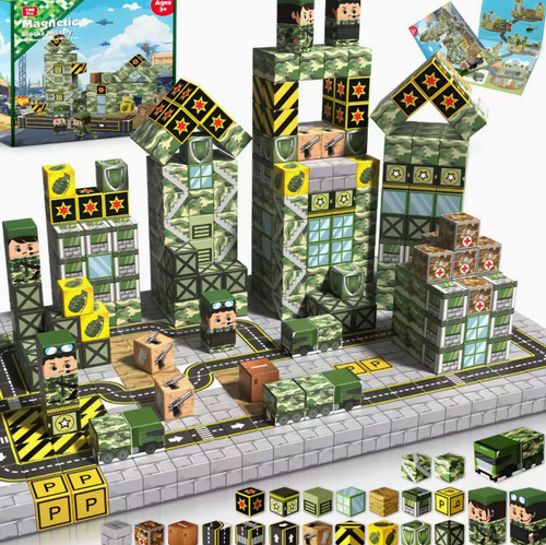 Annexfun Magnetic Blocks-100PCS Military Building Blocks Set, Kids Classroom Sensory Toy for Toddlers STEM Learning, Construction Stacking Toy for Kids 3+ Boys and Girls Christmas Birthday Gifts Toys