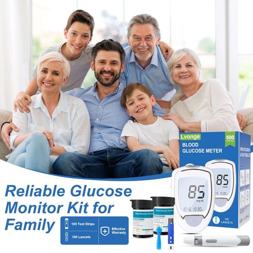Glucose Monitor Kit, High Accuracy Blood Sugar Testing Kit with 50 Glucometer Strips or 50 Lancets, Larger-Screen Glucose Monitor with Lancing Devices, No Coding, Portable for Home or Travel