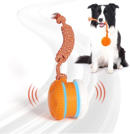 Interactive Dog Ball, Random Path Electric Automatic Moving and Rolling Dog Toy with Rope for Small Medium Large Dogs, Motion-Activated Dog Stimulation Toy for Boredom Relief