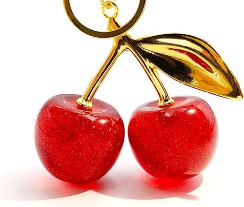 Shiny Red Cherry Bag Charm Keychain | Vintage Gold Plated 3D Fruit Pendant | Cute Handbag Key Ring Accessory | Perfect Girl Gift Free Delivery