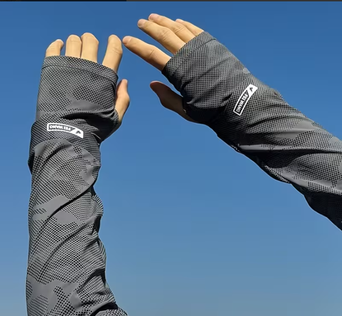 Summer Ice Silk Arm Sleeves with Thumb Hole UV Sun Protection UPF50+ Breathable Elastic Men Women Outdoor Cycling Cooling Arm Cover