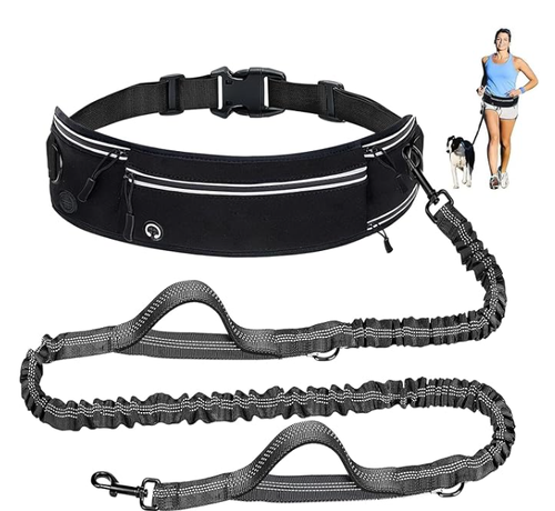 Waist Dog Hands Free Dogs Leash, Waist Running Leash with Zipper, Walking Pouch for Dog Walking, Reflective Dual Padded Handles Bungee Retractable Running for Medium to Large Dogs (Black)