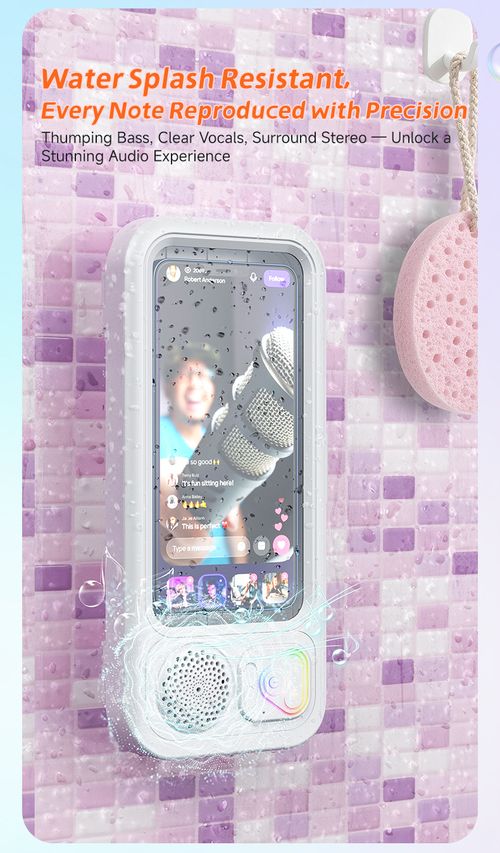 Waterproof Bathroom Bluetooth Speaker | Wall Mount Phone Holder Touch Screen Shower Speaker 2 In 1 Shower Phone Stand & Bluetooth Speaker | IPX Waterproof For Bathroom Kitchen Portable Wall Mount Waterproof Speaker | Hands Free Music & Video Viewing For Shower